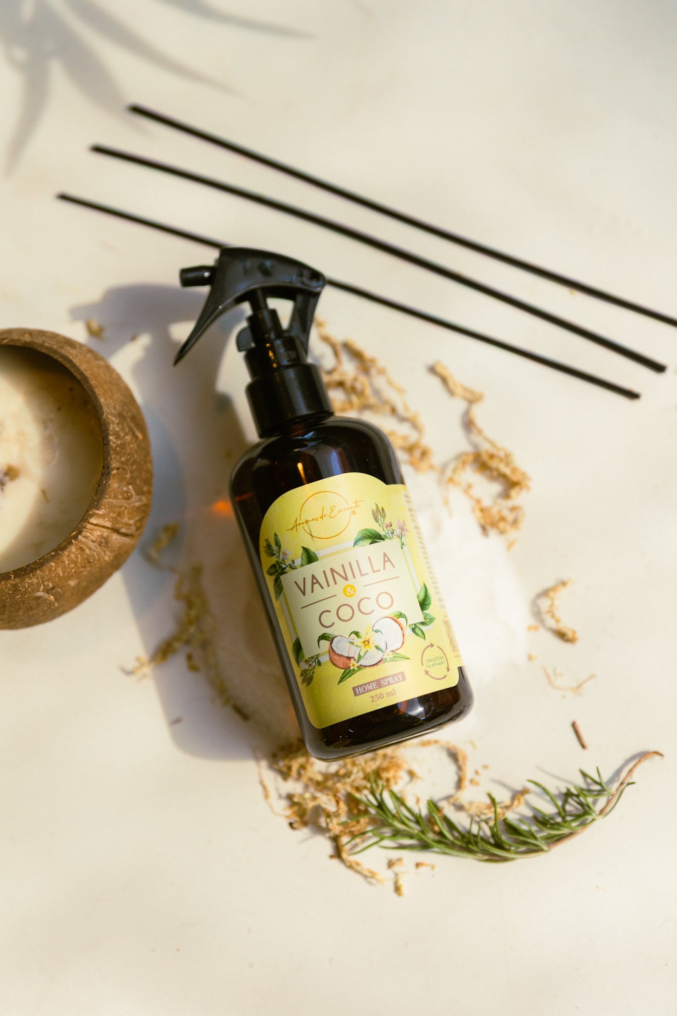 Rocía 2–4 veces hacia el aire o sobre textiles a distancia.