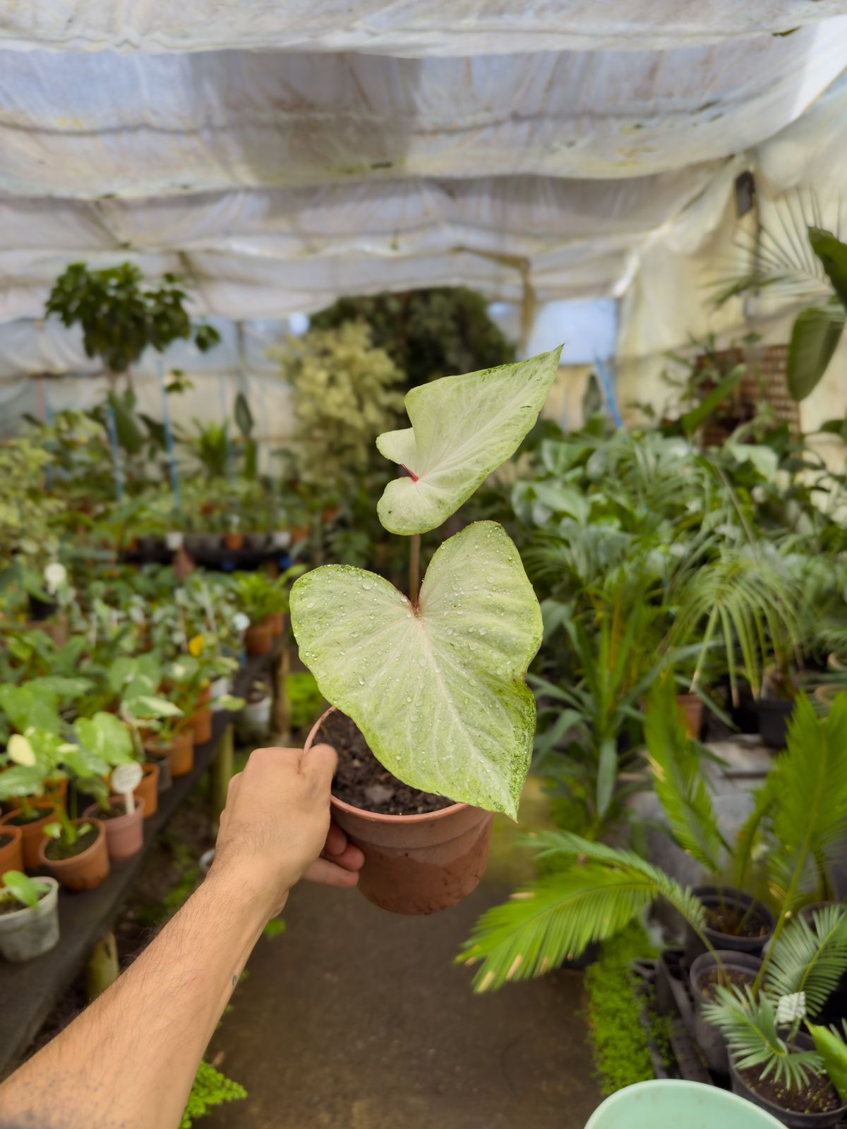 Los Caladium son plantas tropicales conocidas por sus hojas grandes y coloridas que presentan patrones en tonos de verde, blanco, rosa, rojo y otros matices. Su belleza y variedad de colores las convierten en plantas ornamentales muy apreciadas, especialmente para interiores o jardines sombreados.