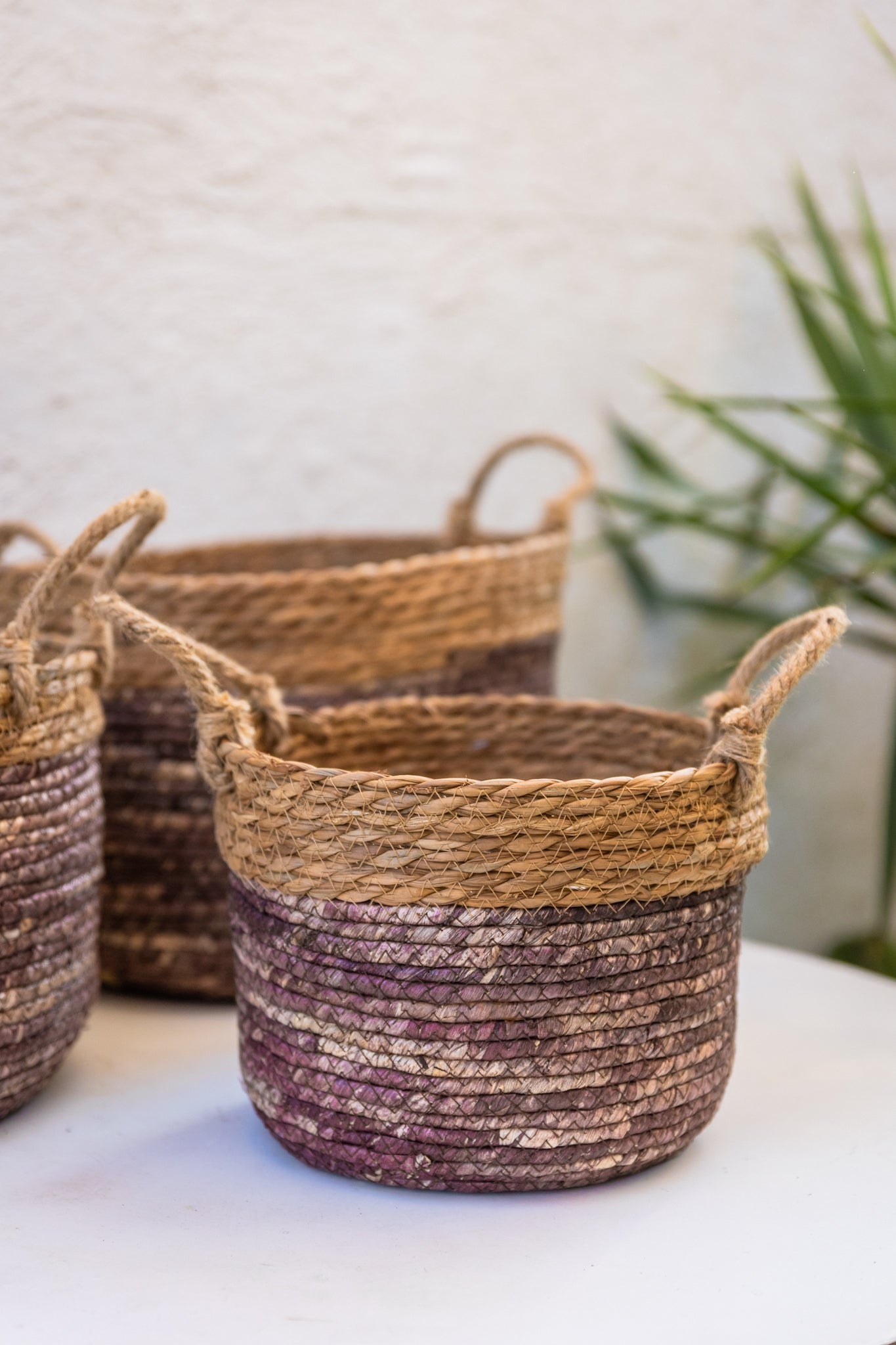 Canastos de fibra natural y mimbre para plantas (Set S-M-L)