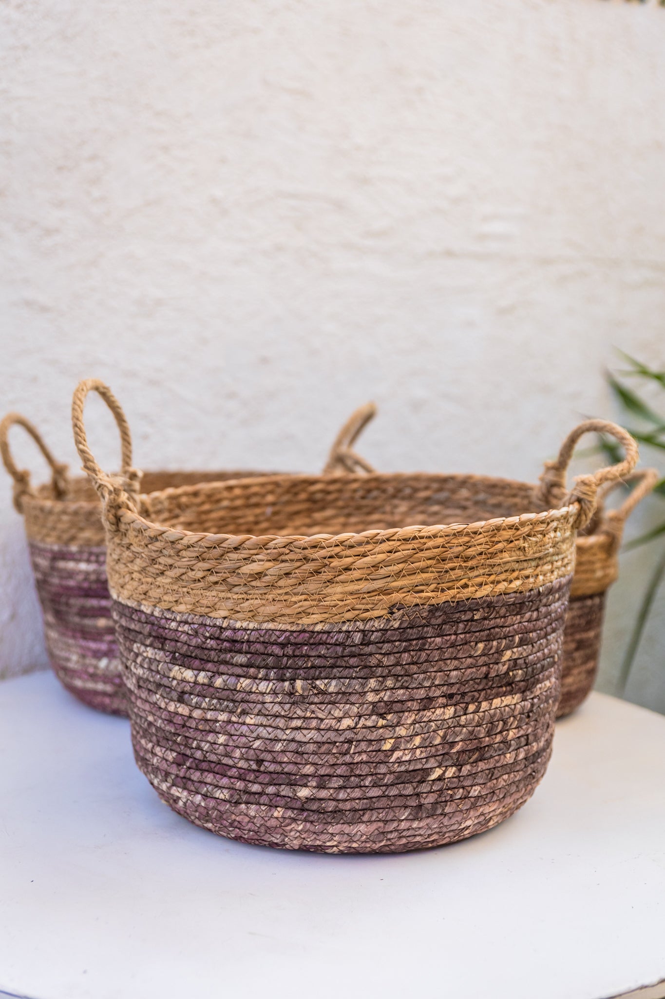 Renueva cualquier rincón con estos canastos tejidos a mano en fibra natural y mimbre, diseñados para vestir maceteros y aportar textura orgánica a tu decoración. Disponibles en tres tamaños (pequeño, mediano y grande), puedes comprarlos por separado o como set para lograr una composición escalonada que resalte tus plantas de interior.
