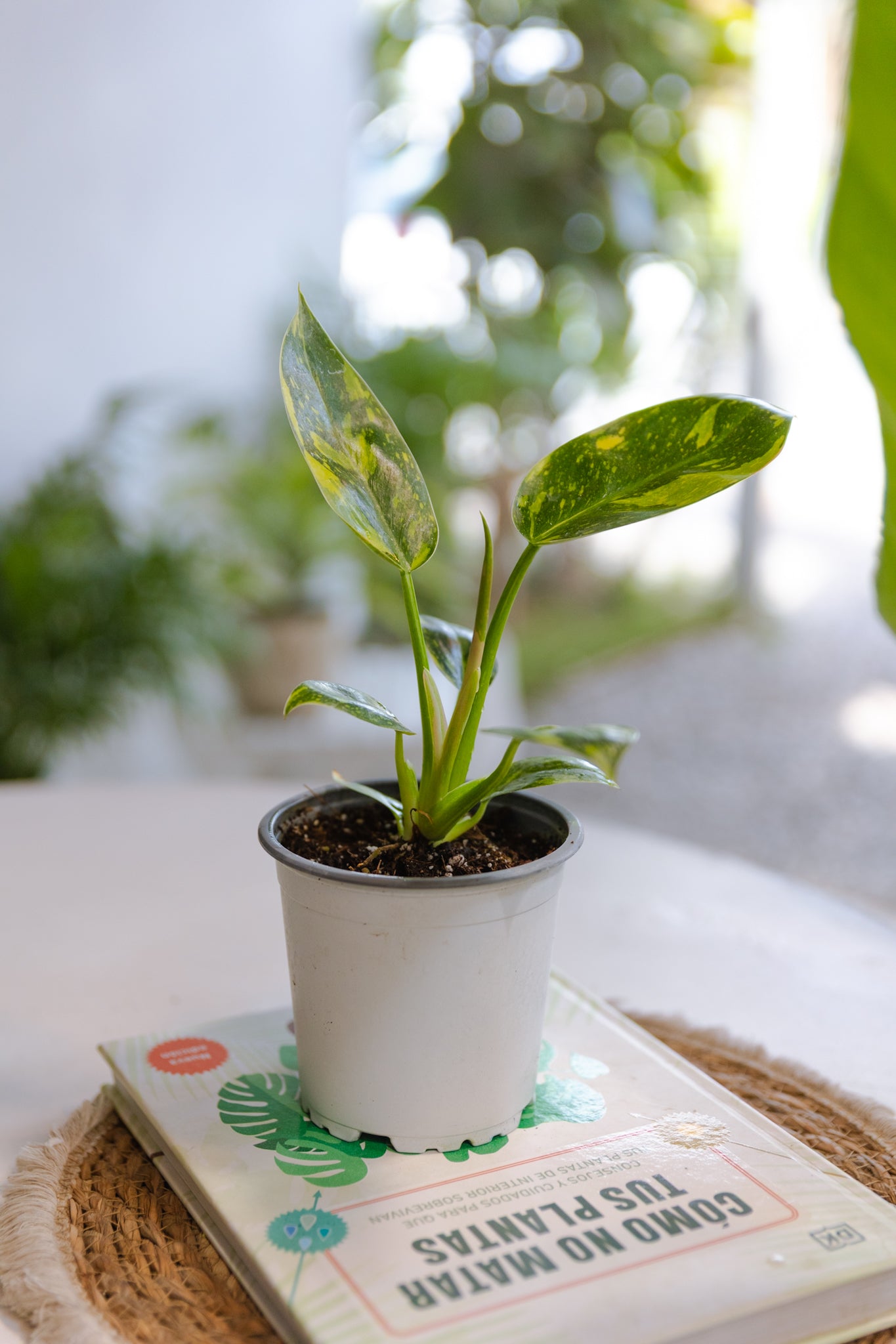 El Filodendro Congo Hybrid Variegado es una planta de porte robusto que destaca por su follaje exótico y llamativo. Sus hojas grandes y brillantes muestran una variegación única en tonos crema, verde lima y verde profundo, creando un contraste vibrante que aporta luminosidad y personalidad a cualquier espacio interior.
