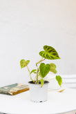 El Filodendro verrucosum presenta hojas grandes y aterciopeladas con un característico tono verde oscuro. Sus hojas en forma de corazón exhiben texturas y relieves notables, lo que le confiere un aspecto distintivo y atractivo. Su crecimiento vertical lo hace adecuado para diversas configuraciones de interior.