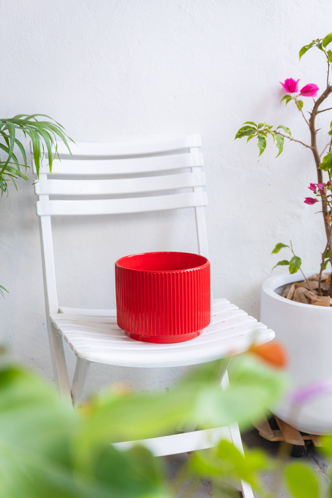 Macetero de Cerámica Modelo Industrial Design Rojo, tres tamaños disponibles: