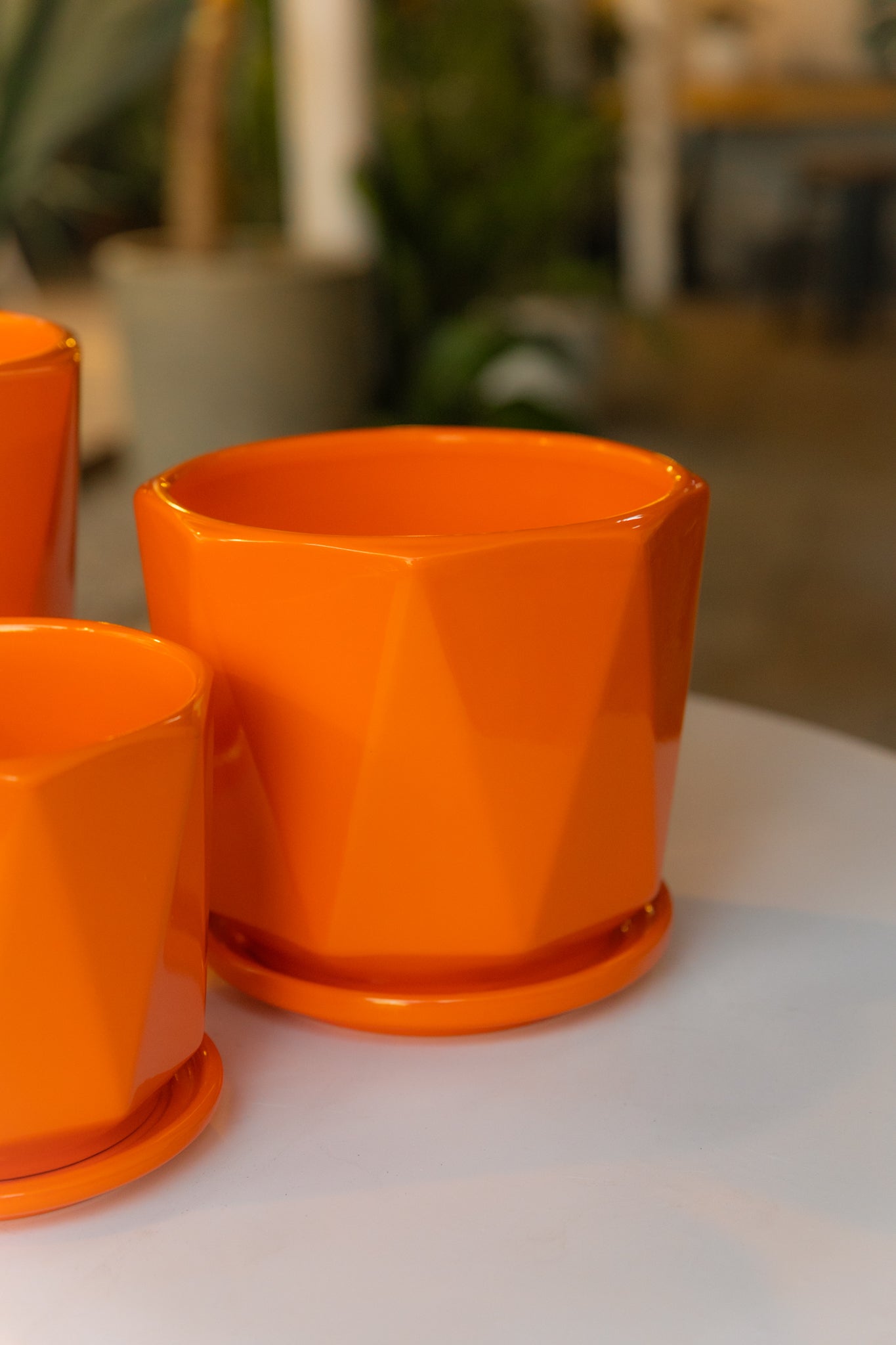 Macetero de Cerámica Naranjo modelo Colors, tres tamaños disponibles: