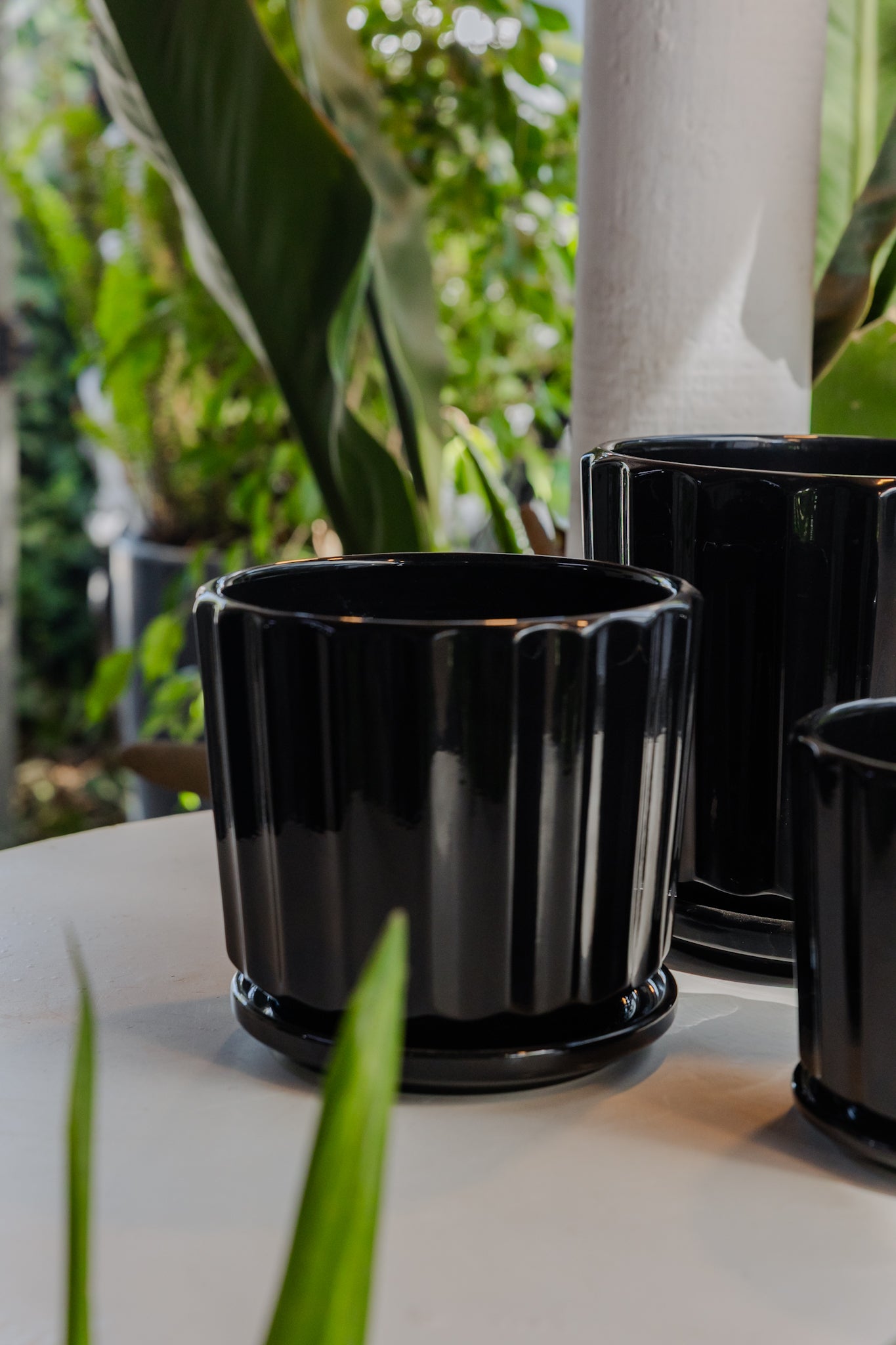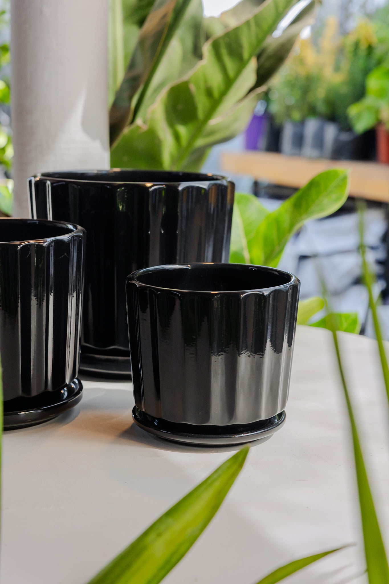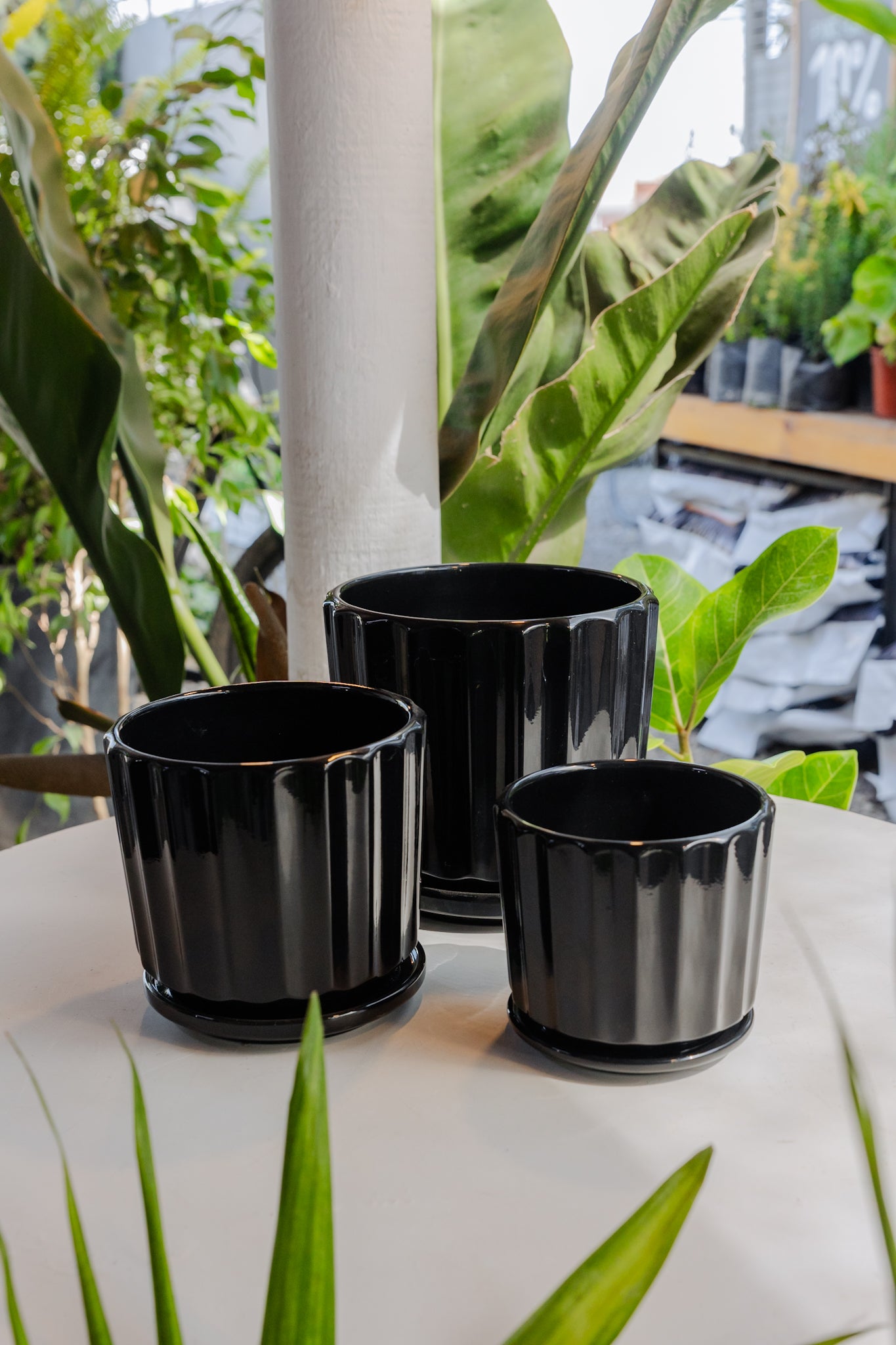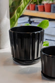 Macetero Cerámica modelo Retro Negro, tres tamaños disponibles: