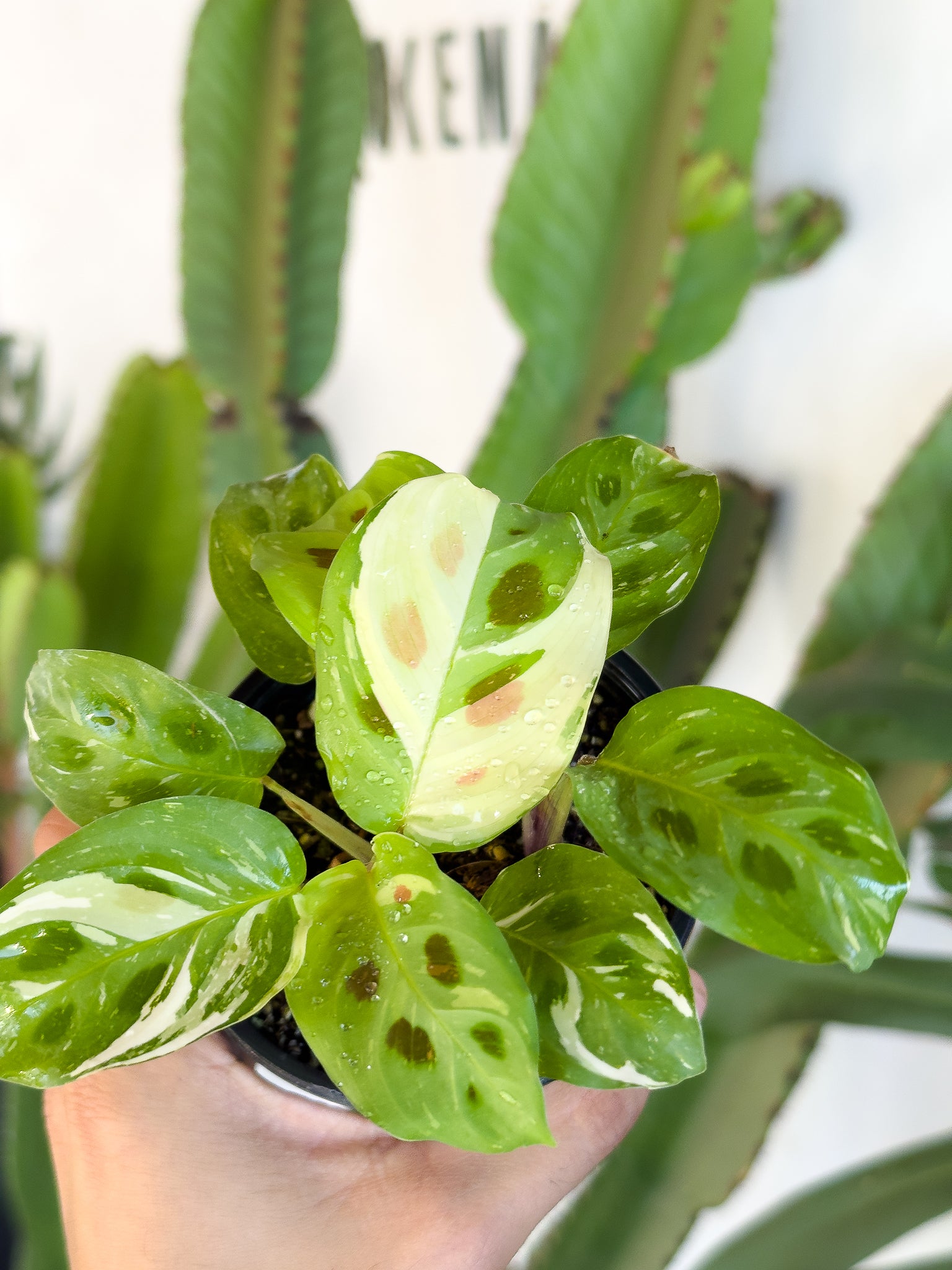 La Maranta Tricolor o Flor de la Oración. También es conocida como “la planta que reza” por su ritual nocturno de doblar y juntar sus hojas en posición vertical todas las noches. Esta planta tropical es originaria de América Central y pertenece a la familia de las Calatheas.