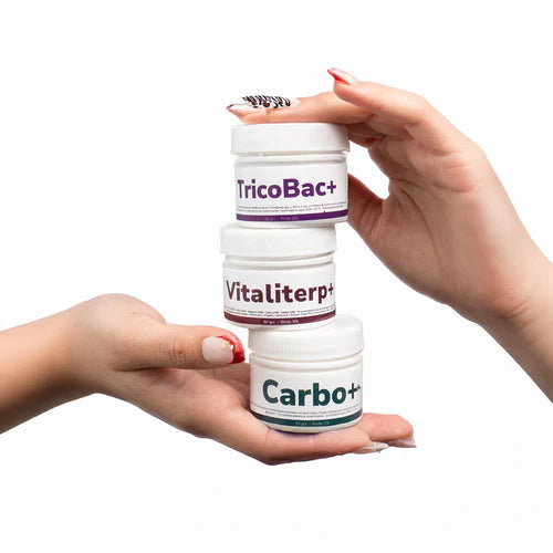 🔸 Tricobac – Microorganismos benéficos que protegen las raíces, evitan hongos dañinos y mejoran la absorción de nutrientes, manteniendo tu planta sana desde abajo.