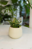 La Sansevieria enana, también conocida como Sansevieria trifasciata "Hahnii", es una variedad compacta y de crecimiento lento de la popular planta de serpiente o lengua de suegra. Se caracteriza por sus rosetas de hojas cortas y anchas que crecen en forma compacta, lo que la hace ideal para espacios pequeños o como planta de interior.